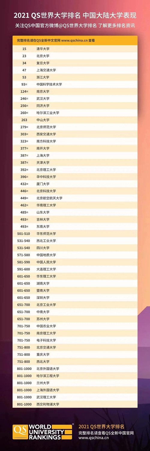 近日,最新2021QS世界大学排名发布,三所中国顶尖大学获得了其QS排名史上的最高排位。